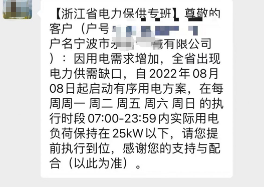 近期,我們收到了通知,由于用電需求增加。浙江省出現(xiàn)電力供缺口,要求我們在每周一7點到24點限電。